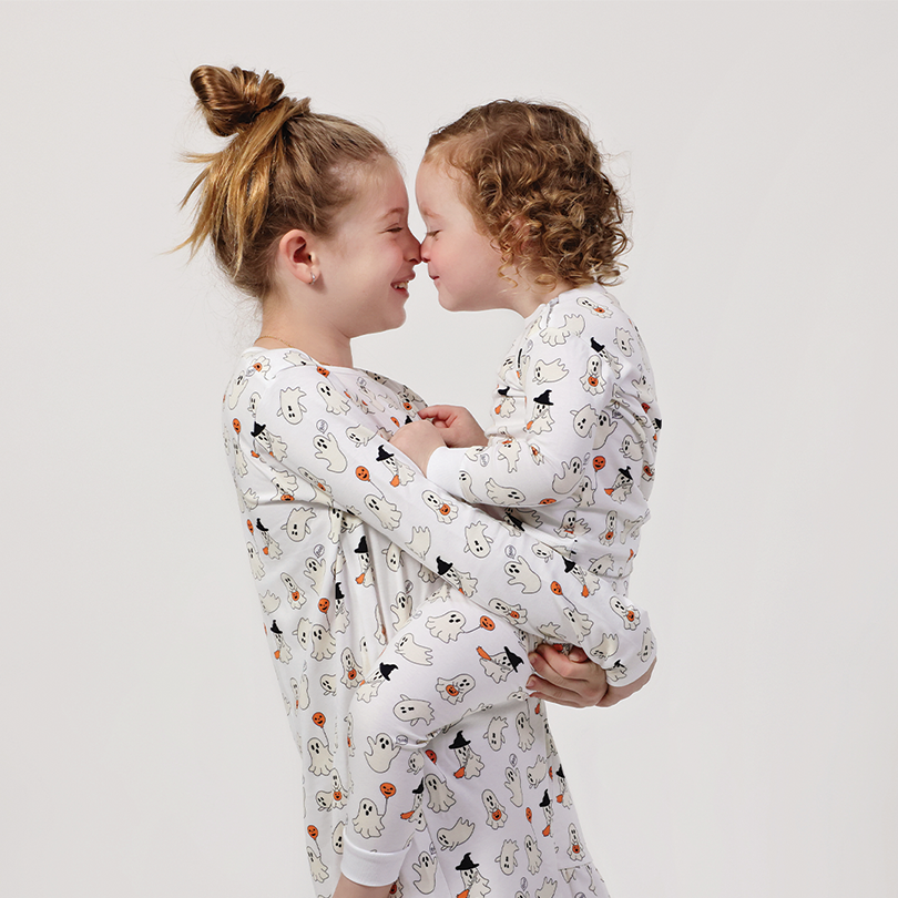 Make this Halloween extra spooky with our two piece pajama featuring cute ghosts that will make bedtime nothing but sweet! Made of 100% Pima cotton and perfect for little boys and little girls alike.