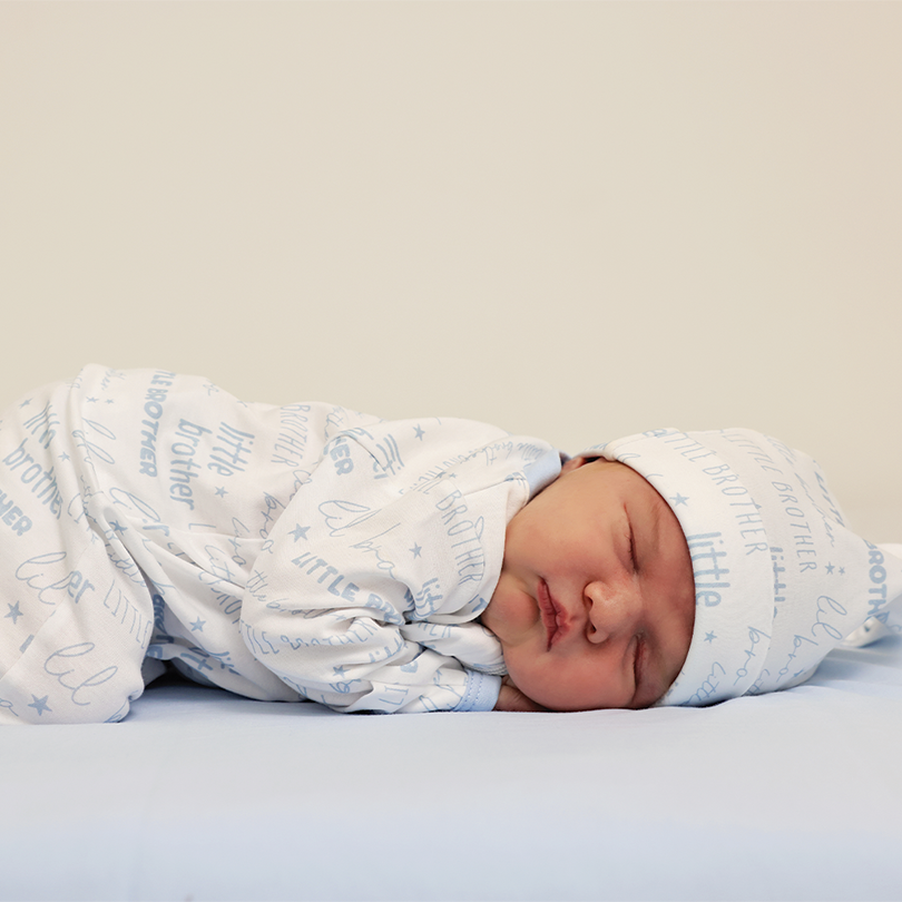 The perfect outfit for the newest and most awaited member, a new baby brother. This baby boy footie is the most adorable and memorable of their wardrobe. Made with 100% Pima cotton for extra comfort and durability. Two way zipper for easy diaper changes.