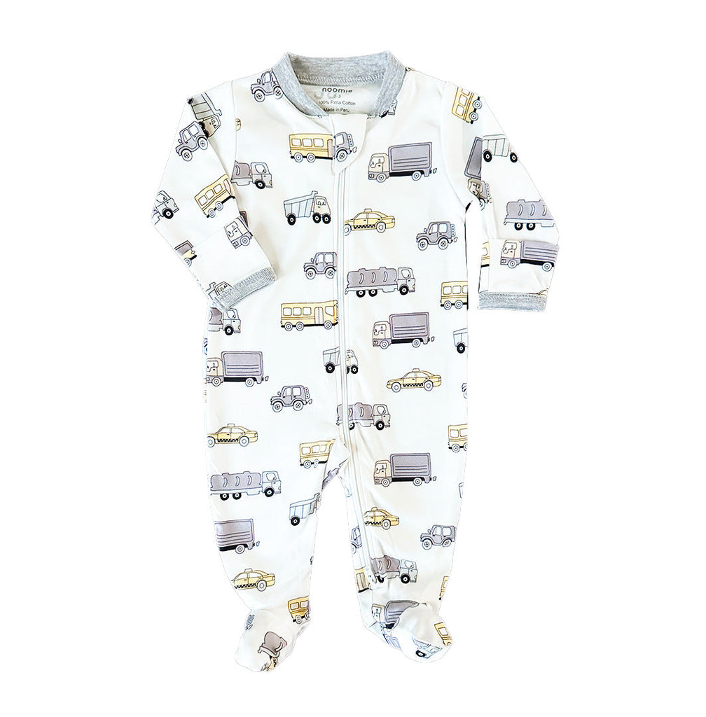 For future little travelers and adventurers, meet our transportation-themed footie to spark and inspire your baby boy's imagination. This baby boy onesie features a double zipper for easy diaper changes and non-slip foot soles for size 12-18 and up.